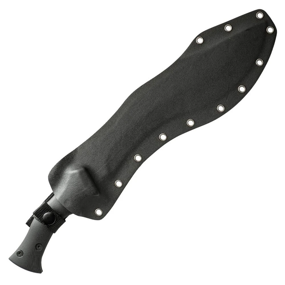 - 10.25″ (26.04cm) black oxide coated 9260 steel kukri blade