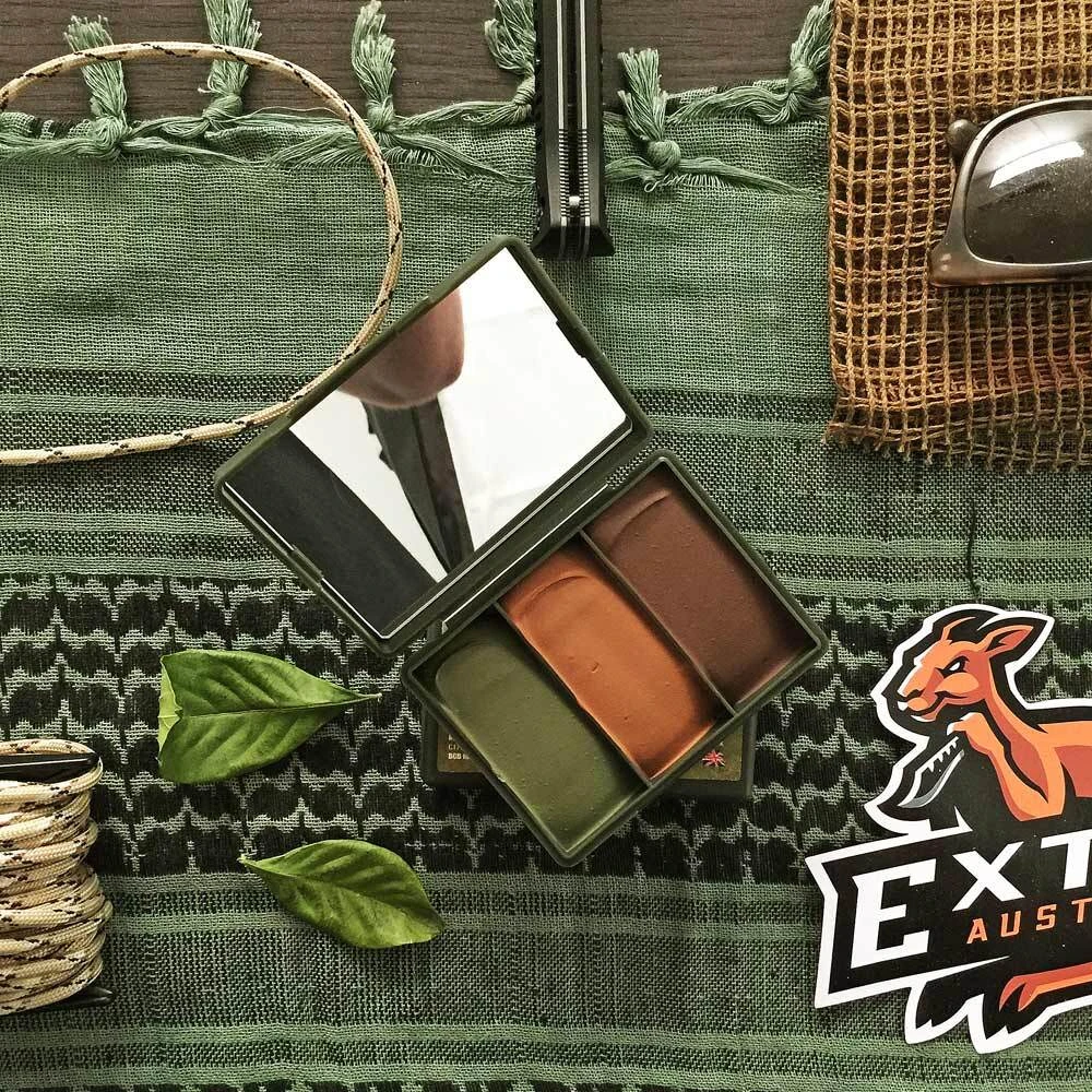 BCB is the current suppliers of 3 colour compact camouflage cream to the British MOD. This new version of our camo cream is “non-irritant”, Infrared Reflective (IRR) and is standard issue to armed forces worldwide. Supplied in a strong ABS plastic case, Integral acrylic mirror in the lid.