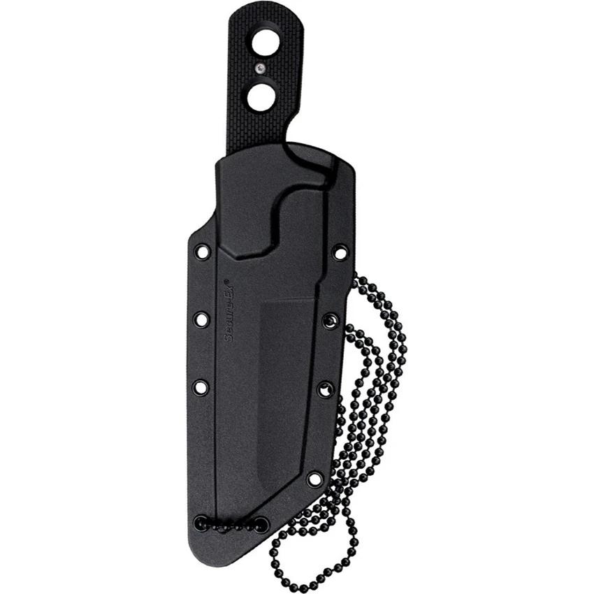Cold Steel’s new generation of Mini Tac Neck Knife is astonishingly light at 3 ounces each. Because they’re so lightweight, they can be comfortably worn practically 24 hours a day. With their sturdy bead chain lanyards and their rugged Secure Ex® sheaths (specially designed to snugly retain the knife while allowing a speedy draw stroke), they can be worn outside clothing and perform as a handy utility or rescue knife. They can also be carried more discreetly under a shirt or blouse or inside a coat. They can even be used for camping or hiking as they can easily be tied or taped anywhere from a backpack to a fanny pack.