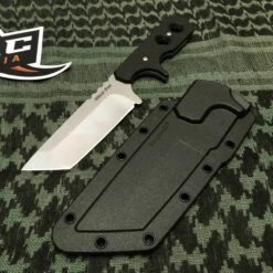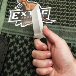Their versatility is virtually endless. Fashioned from AUS 8A stainless steel and reflecting state of the art heat treatment they are honed to a razor edge and exhibit incredible toughness for such a small knife, due in part to their full tang construction. Tough, rough, and ready for anything, they come equipped with thin high-quality black G-10 handle scales. This feature allows them to lie flat and close against the body and provide an aggressive gripping surface. Also when these scales are combined with integral sub hilt they give the fingers of the hand incredible purchase and allow a remarkably secure grip that resists rolling or twisting.