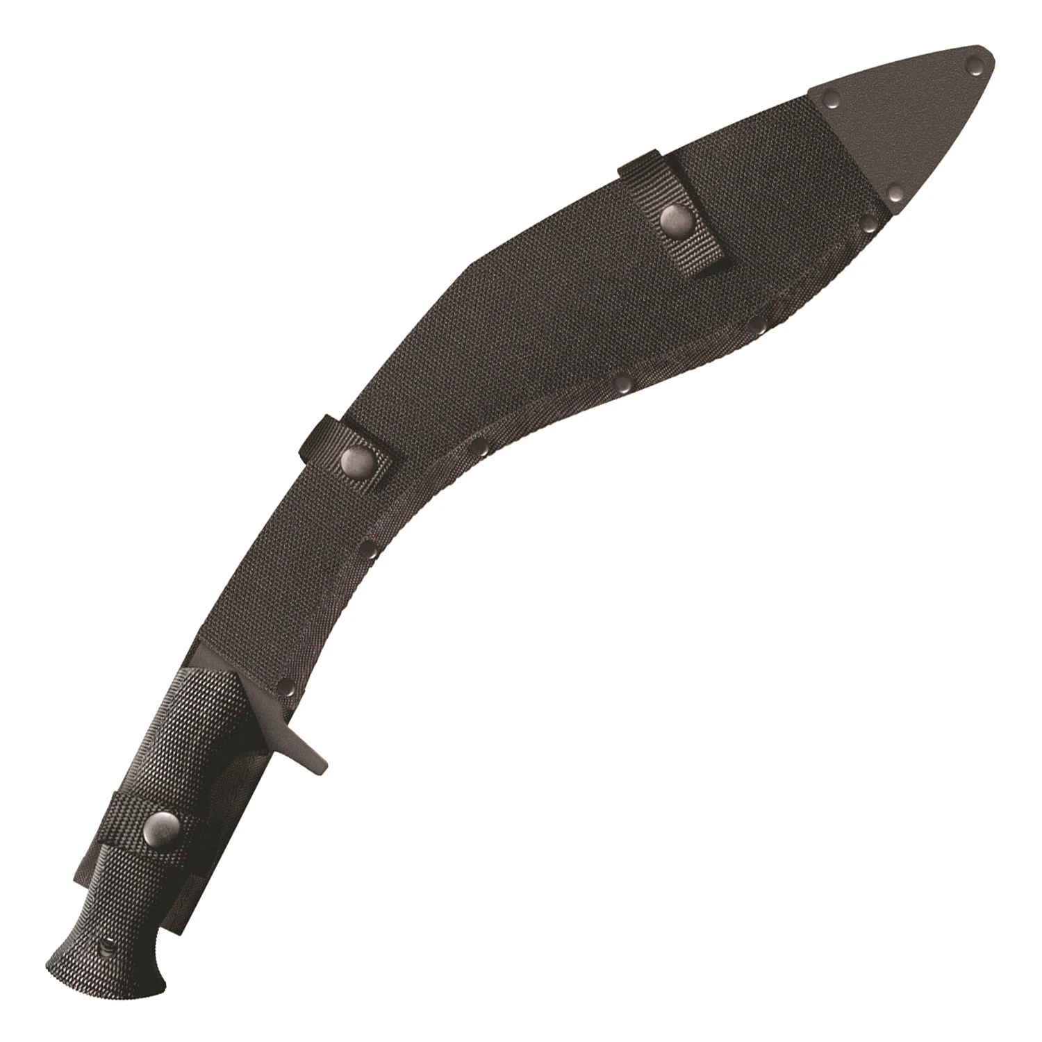 Cold Steel President Lynn C Thompson has been exploring the potential of the Kukri for over two decades. It’s hard to find a more versatile knife. A stalwart ally in a tight spot and an indispensable survival tool, a good Kukri is truly apocalypse proof! When he chose to design a new Kukri Lynn looked to his many hours fighting in Cold Steel’s training facility for inspiration. Where other companies look to hired help for their “knowledge”, standing on the shoulders of giants, Lynn and his team invested their own blood, sweat and tears, endlessly sparring with different prototypes looking for ways to improve upon this already near perfect design. Lynn recognized that many of the qualities that make a great fighting knife also make a great bushcraft tool. A sharp blade, strong tip, good hand protection and a versatile handle are all key. Stripping the Kukri back to its bare basics he then began re-designing the knife from the ground up. The re-imagined blade was presented at an entirely new angle, keeping the cutting power that made the Kukri the stuff of legend but increasing its thrusting and piercing power. The handle with its integral guard kept the user’s precious digits safe from harm while changing the balance and heft of the knife considerably. The newly christened Royal Kukri was then extensively field-tested. Proving to be an outstanding multi-functional bush knife. Capable of the toughest bushcraft chores, from chopping firewood to dispatching wounded game, it also provides the comfort of a last resort self-defence option. With a rust resistant baked on matte black coating, the fully sharpened 1055 Carbon Steel blade is safely and securely held in a sturdy Cor-Ex sheath.