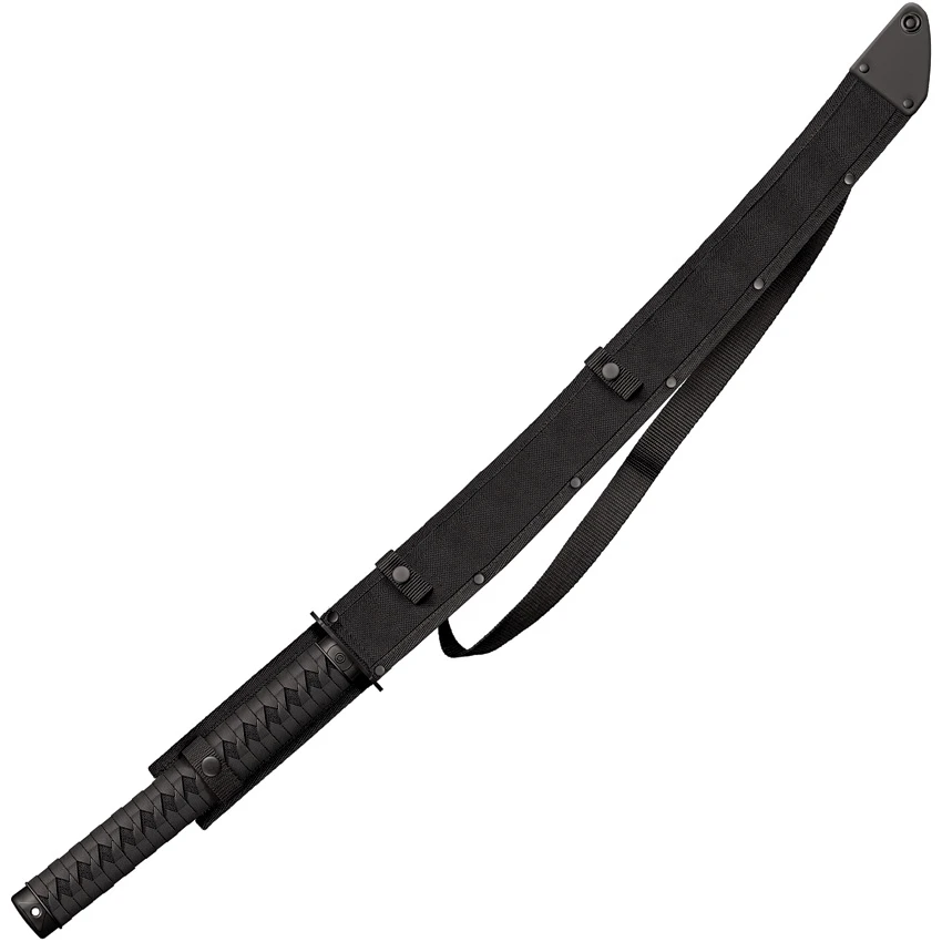 With its deeply curved blade, it offers more “sword-like” cutting performance, and with its broad full tang, solid steel tsuba and injection over-molded high impact polymer handle its incredibly durable.