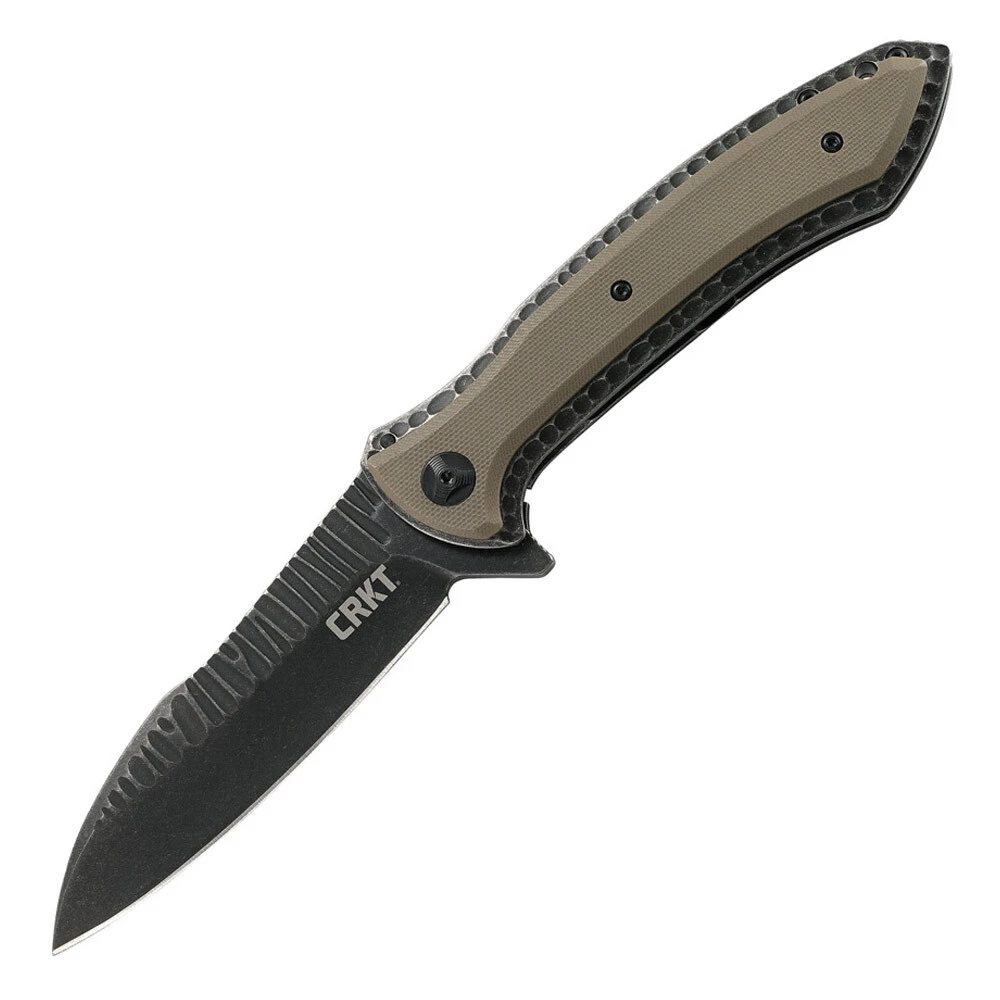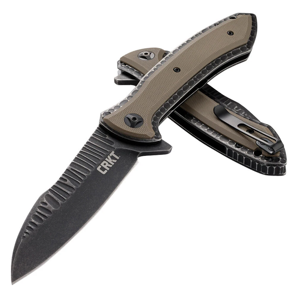 - Black stonewash finish stainless handle with desert tan G10 onlay