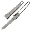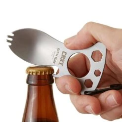Yes, there is an ergonomic spoon and a short-tuned fork. But in addition, there’s a handy bottle opener on one side. The right side of the handle is ground to provide an emergency screwdriver blade, which will also work as a pry for opening canisters.