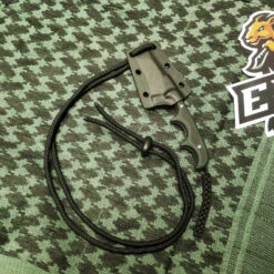 Each Minimalist comes with a custom-fitted glass-filled nylon sheath and neck paracord for inverted carry as a neck knife. The knife is held securely in place by a positive detent which locks the base of the blade in place for maximum safety.