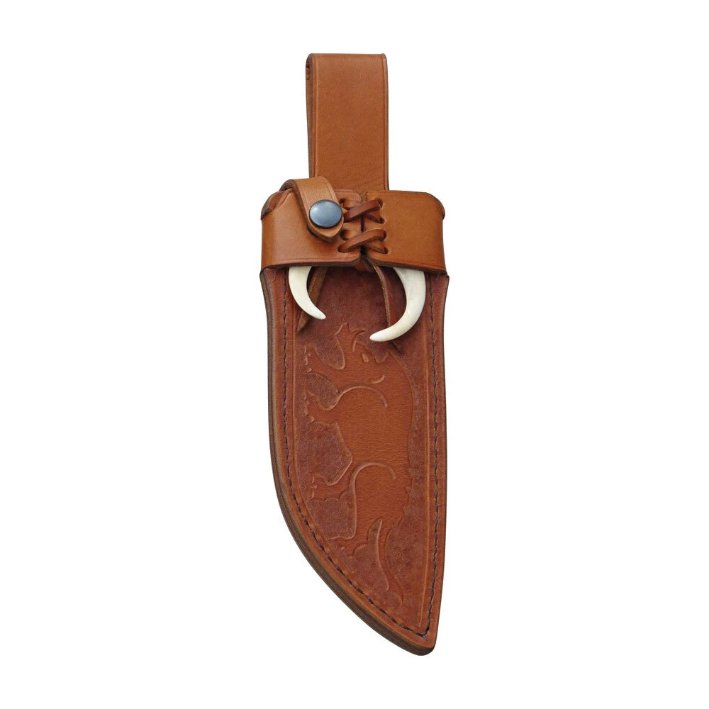 Add a uniquely styled heavy leather sheath with genuine bone ornaments and a quick-release catch, and we figure this one’s going to be tough to beat for a specialized hunting/camping knife.