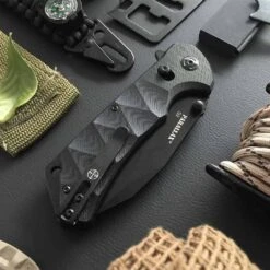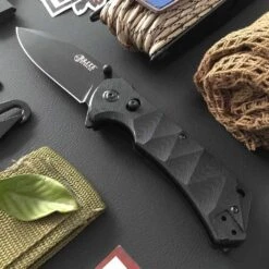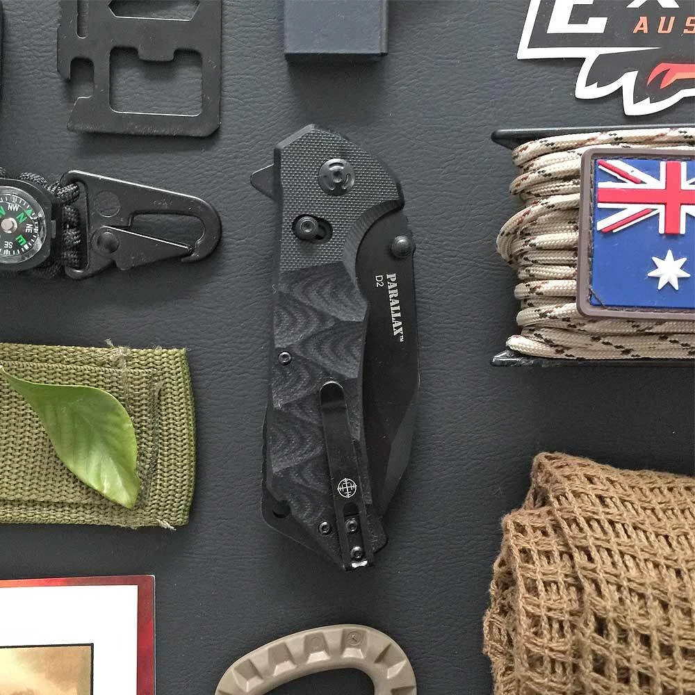 - 3.5″ (8.89cm) black finish D2 tool steel blade