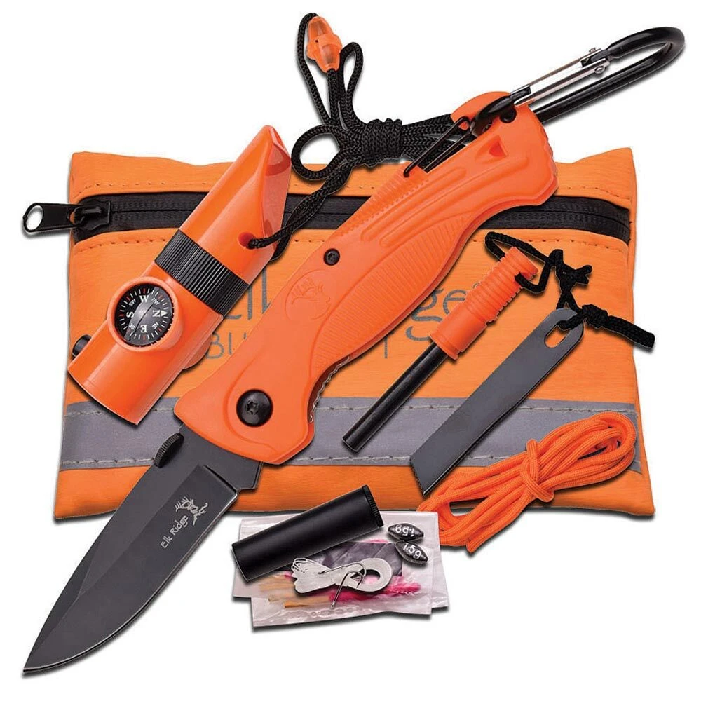 - Stainless blade Includes 4.5″ closed framelock with 3″ black finish stainless blade and an orange plastic handle with carabiner.