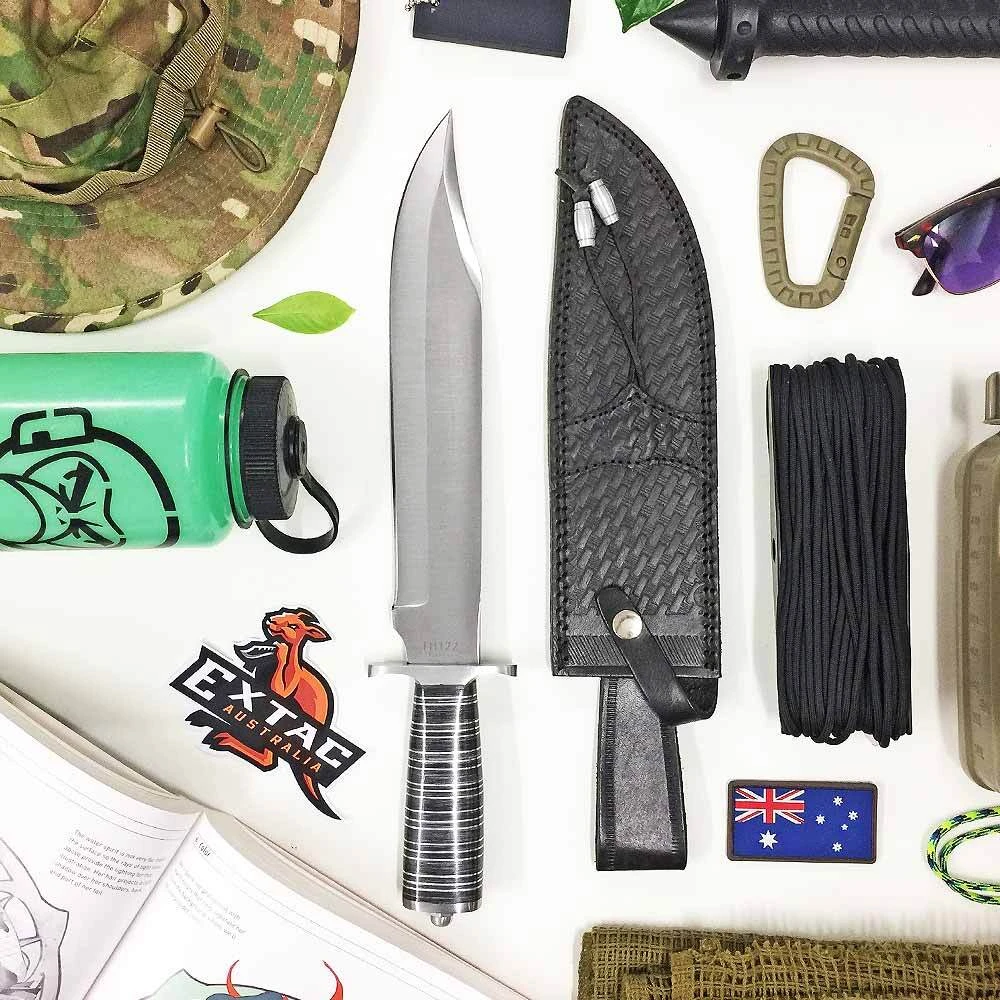 Fox-N-Hound Bowie Stacked Handle Fixed Blade Knife Specifications: