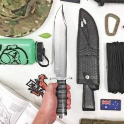 - 11″ (27.94cm) satin finish stainless bowie blade