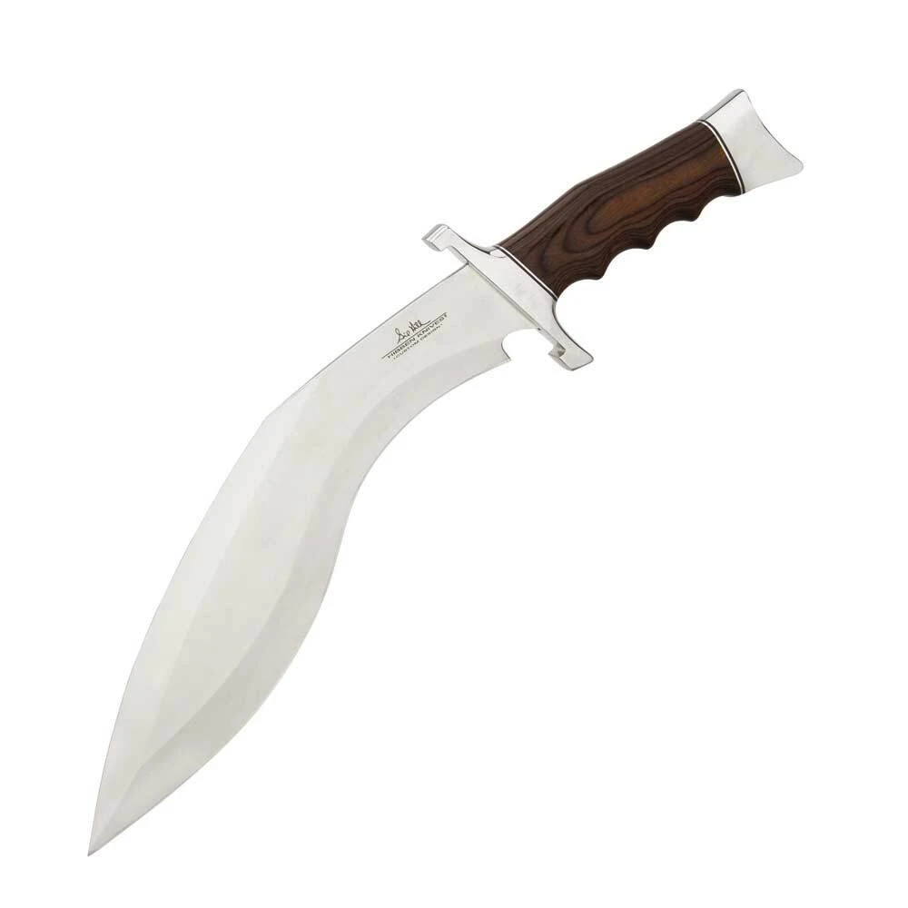 - 11.88″ (30.18cm) mirror finish 5Cr15MoV stainless curved blade.