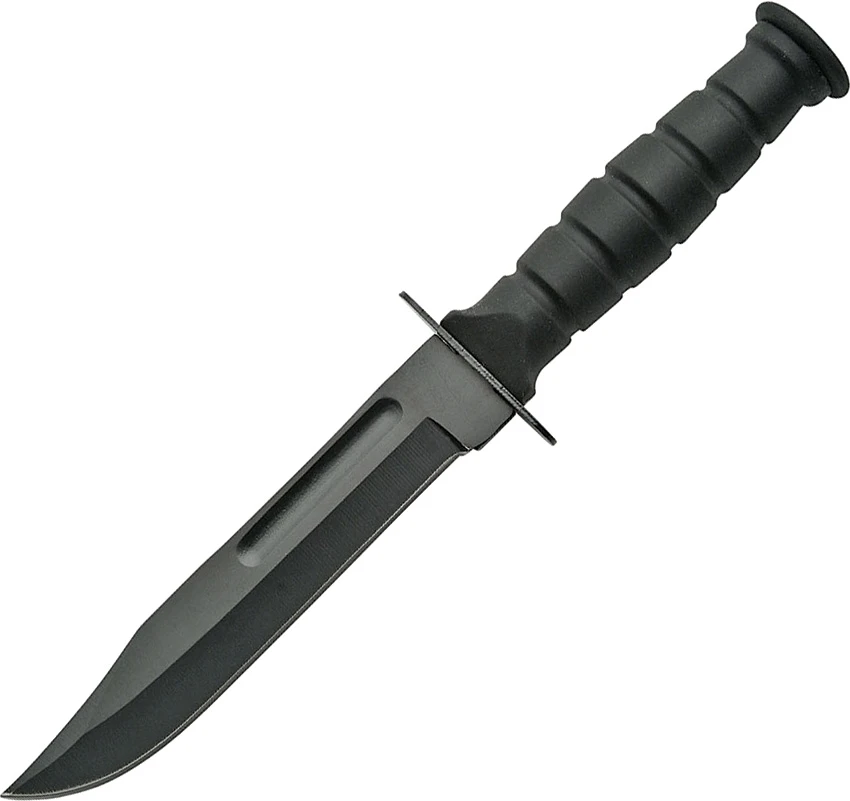 - Black grooved rubber handle with stainless guard.
