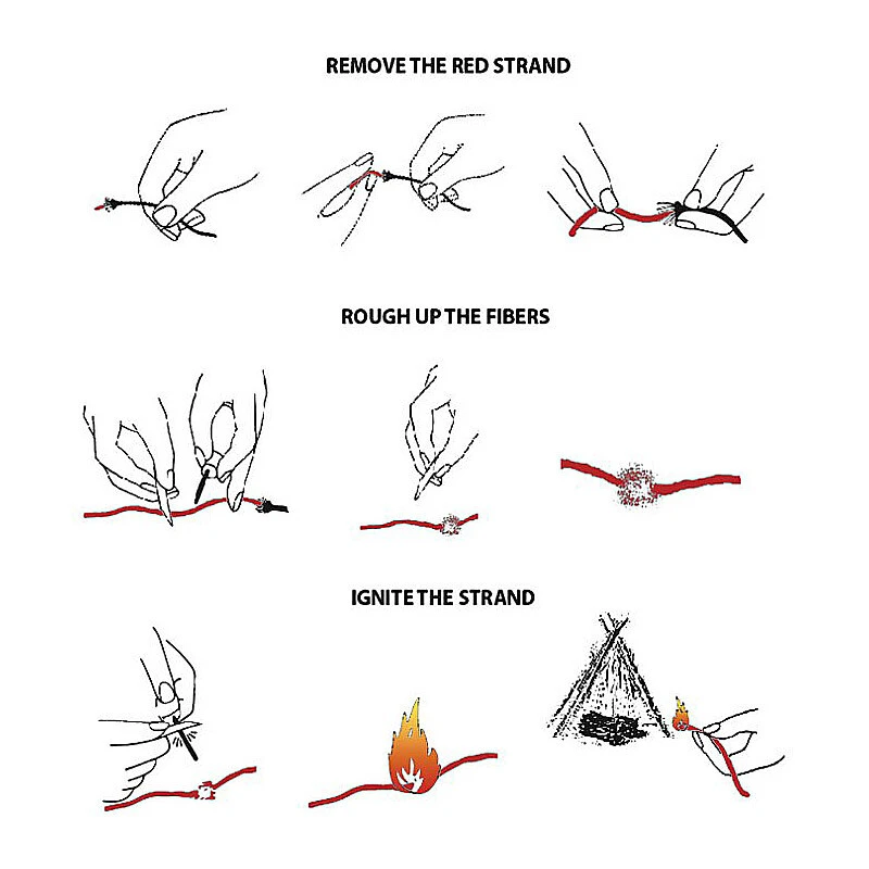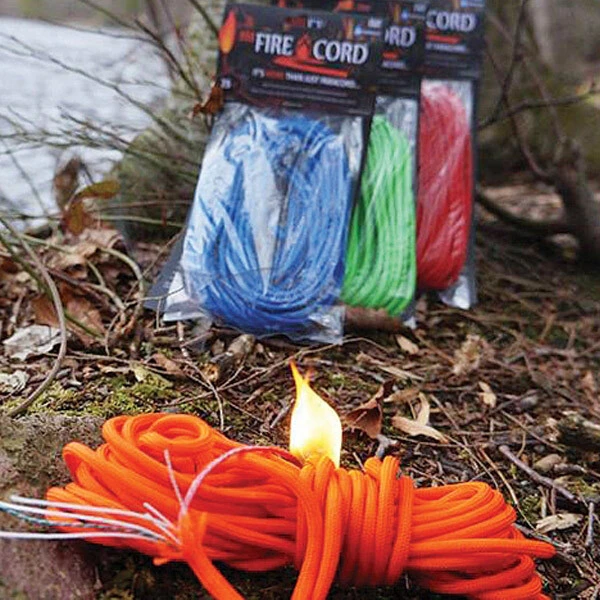 Fire tinder added as the 8th inner strand to standard 550 nylon paracord. The 8th strand is colour coded, waterproof, and is easy to ignite. When you need the fire tinder, remove the inner strands, light just like any fire tinder and build your fire. After the inner strands are used, the outer shell can be reused like before, for lanyards, keychains, zipper pulls, or emergency lashing. 25 ft. length.