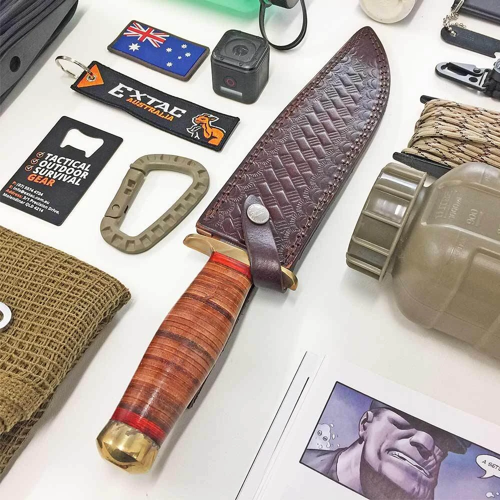 Marbles Adamant Stacked Leather Bowie Fixed Blade Knife Specifications: