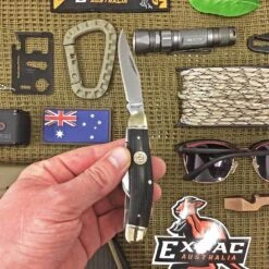 - Mirror finish D2 tool steel clip, sheepsfoot, and spey blades