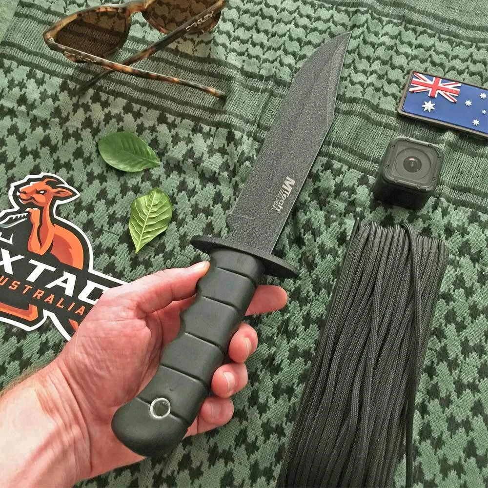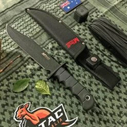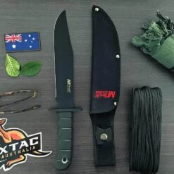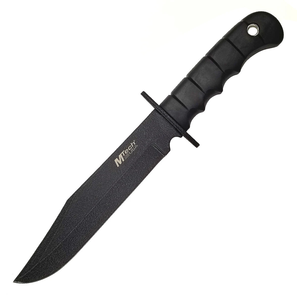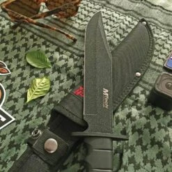 The MTech Special Ops Combat Bowie boasts a massive 8 5/8″ black traction coated, non-reflective 440 stainless blade and measures 14″ overall. The black rubber handle features comfortable finger grooves that give the user a solid grip under the harshest conditions. Other features include a lanyard hole for attaching 550 Paracord and comes complete with a black nylon belt sheath.