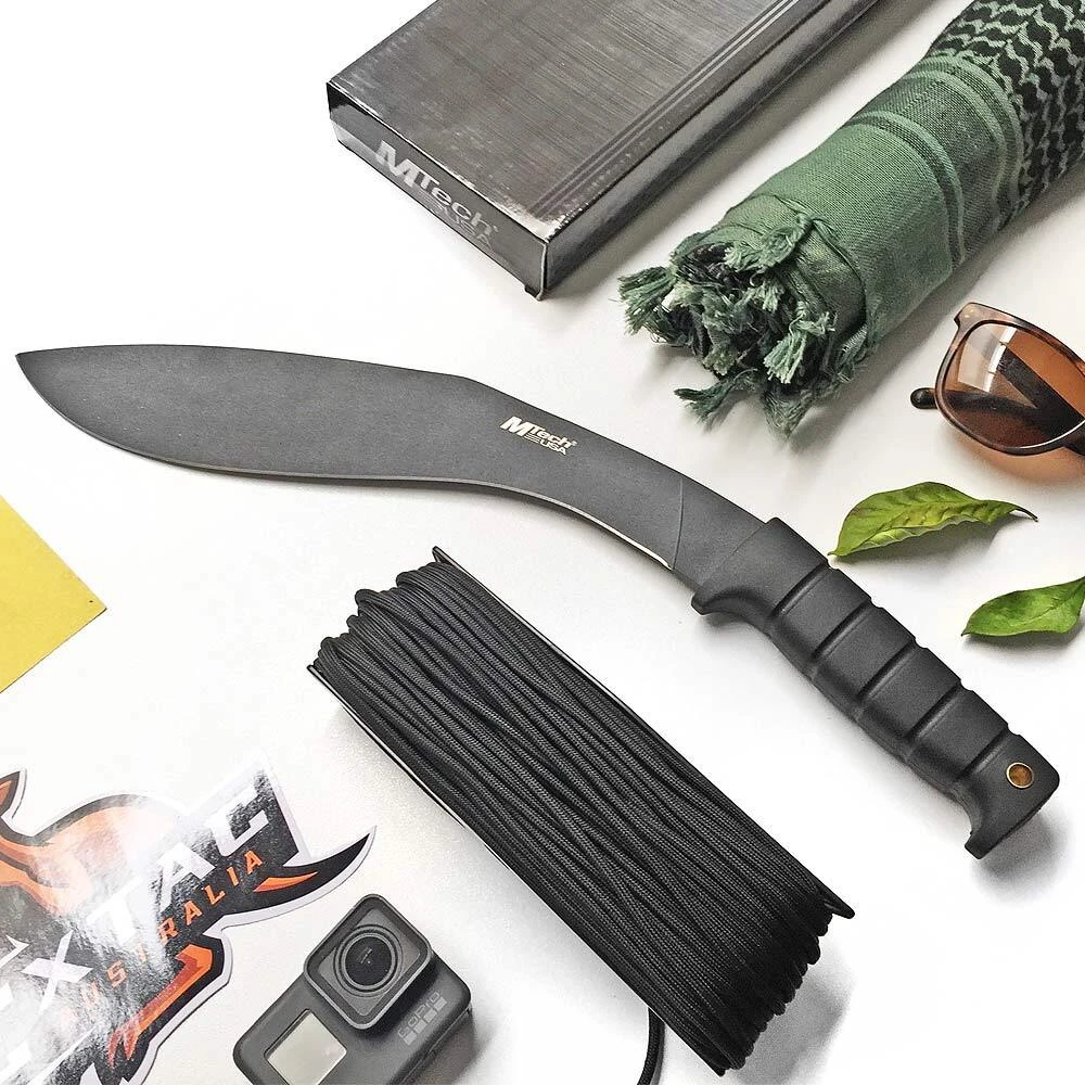 The MTech Tactical Kukri is a hard use chopping knife and has a massive 12″ 440 Stainless blade that’s 1/4″ thick! Measuring 17″ overall, this is one big knife!