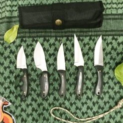 - 5″ overall with 2.25″ clip point blade and finger grooved handles
