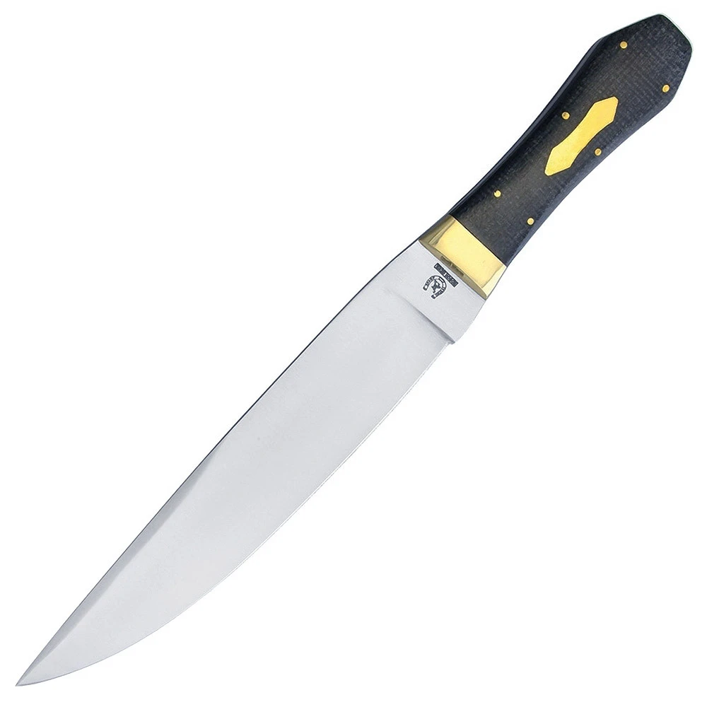 This new traditional style Bowie knife is 16.25″ overall with a satin finish stainless blade. The Rough Rider also features a black micarta handle with brass guards. It’s a full tang design and also comes with a strong brown leather belt sheath.