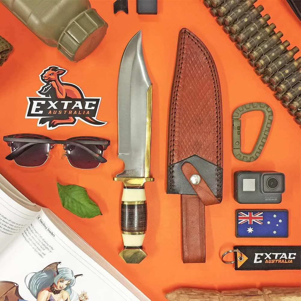 Rough Rider Brass Spine Fixed Blade Bowie Knife Specifications: