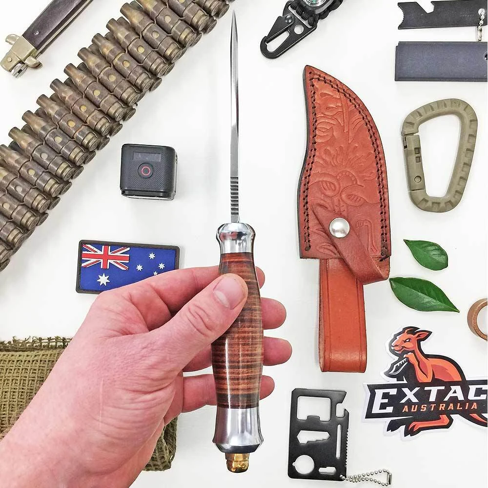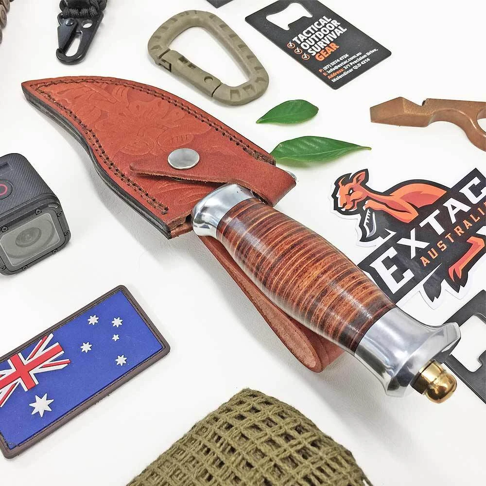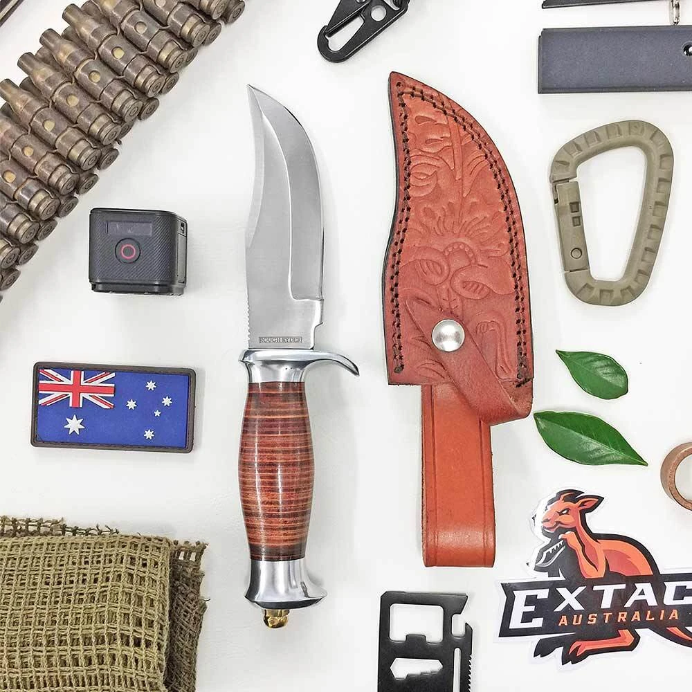 Rough Rider Hunter Stacked Leather Bowie Fixed Blade Knife Specifications: