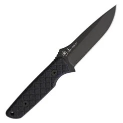 - 3.75″ (9.53cm) black powder coated 1095 Cro-Van carbon steel drop point blade